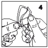 4. Houd de pleister vast tussen duim en wijsvinger, met de (S-vormige) beschermfolie naar u toe gericht. Buig de pleister lichtjes zodat u één helft van de beschermfolie kan verwijderen.