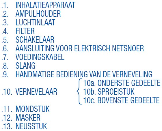 Het wordt aangeraden de vernevelaar bij intensief gebruik om de 6 maanden te vervangen (of eerder, indien de vernevelaar verstopt raakt) om altijd de maximale therapeutische efficiëntie te garanderen.