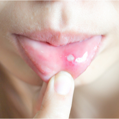 • Pijnlijke zweertjes in de mond, wit met rood randje.